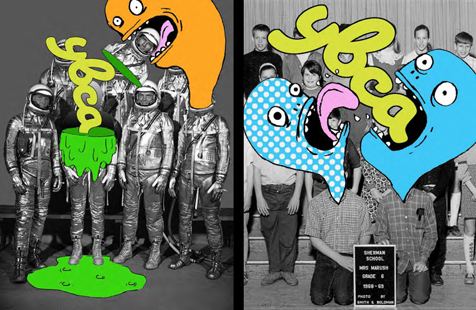 “We had one idea, though, that did evoke this renegade spirit—and we almost didn’t show it. Would you share an idea that has a cartoon monster straight out of Sponge Bob Square Pants or Futurama lopping off the upper torso of 1950’s-era astronaut? This was late-night comic relief between our serious, heavy-hitter directions. Better to include it, though, to show YBCA we understood them and were willing to get a little crazy. There’s no way they’d pick this direction, right?