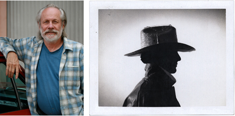 (left) Jeff Wasserman outside his studio in Santa Monica, 2009. (right) Mark Fox photographed by Michael Schwab for one of Michael’s posters, 1986.